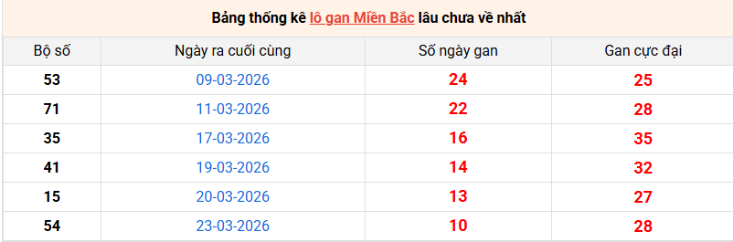 Dữ liệu tiếp theo chúng ta cần biết đó là Lô Gan. Anh em đánh lô đề hàng ngày, việc thực hiện phân tích Soi Cầu Bạch Thủ XSMB 03-04-2026 thì chắc chắn không thể bỏ qua bảng dữ liệu này. Mời anh em cùng theo dõi để nhận định cầu lô đẹp nhất.