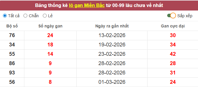 Dữ liệu tiếp theo chúng ta cần biết đó là Lô Gan. Anh em đánh lô đề hàng ngày, việc thực hiện phân tích Soi Cầu Bạch Thủ XSMB 10-03-2026 thì chắc chắn không thể bỏ qua bảng dữ liệu này. Mời anh em cùng theo dõi để nhận định cầu lô đẹp nhất.