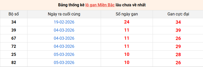 Dữ liệu tiếp theo chúng ta cần biết đó là Lô Gan. Anh em đánh lô đề hàng ngày, việc thực hiện phân tích Soi Cầu Bạch Thủ XSMB 16-03-2026 thì chắc chắn không thể bỏ qua bảng dữ liệu này. Mời anh em cùng theo dõi để nhận định cầu lô đẹp nhất.