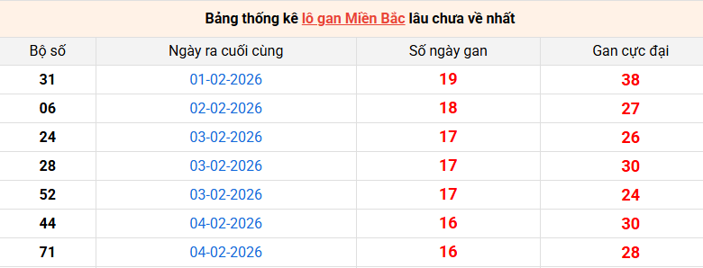 Dữ liệu tiếp theo chúng ta cần biết đó là Lô Gan. Anh em đánh lô đề hàng ngày, việc thực hiện phân tích Soi Cầu Bạch Thủ XSMB 21-02-2026 thì chắc chắn không thể bỏ qua bảng dữ liệu này. Mời anh em cùng theo dõi để nhận định cầu lô đẹp nhất.