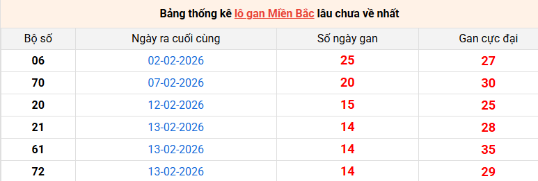 Dữ liệu tiếp theo chúng ta cần biết đó là Lô Gan. Anh em đánh lô đề hàng ngày, việc thực hiện phân tích Soi Cầu Bạch Thủ XSMB 28-02-2026 thì chắc chắn không thể bỏ qua bảng dữ liệu này. Mời anh em cùng theo dõi để nhận định cầu lô đẹp nhất.